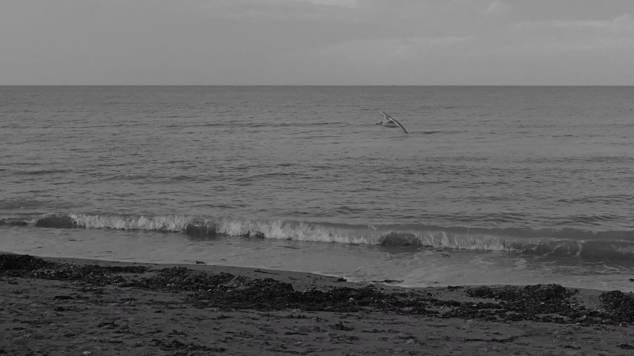 A lonely young woman communes with herself on a beach