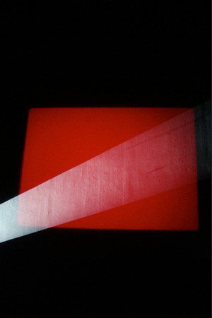 Part One: Variation in Density a)The picture on each of the five screens is identical, seven second fades from black, through clear, to black again. The same fade is printed onto the optical sound track to synchronise with the picture. b)Then follow fades from light to dark. c)And from dark to light. Part Two: Intermittency Relative patterns of occlusion and exposure occupy 2 screens. Each exposure fires a stroboscopic flash of colour: yellow for one screen; blue for the other, filling the centre of both screens with colour, haloed with after-image complementaries. W.R.
