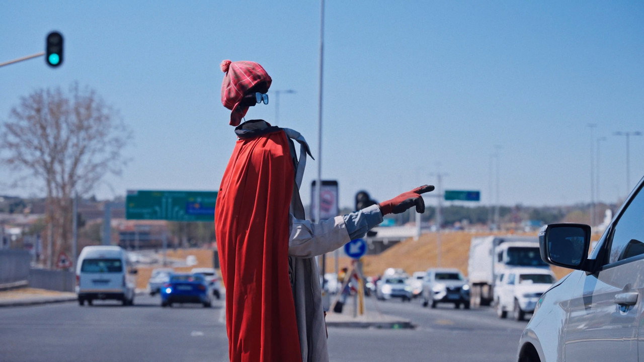 Set at Johannesburg’s traffic light intersections — locally known as “robots” — ROBOTS explores the spaces where inequality, identity, and survival collide. When the lights turn red and vehicles stop, another economy comes alive: dancers, jugglers, artists, hawkers, mimics, and performers seize their brief moment before the lights turn green again. At one such intersection, Gift — also known as “Marshmallows” — performs his striking “Headless Man” act. Behind the scenes, he juggles many roles: husband, father, brother, citizen, and survivor, balancing hope and uncertainty as he strives to make ends meet. As pressures mount, his life is poised to take an unexpected turn.